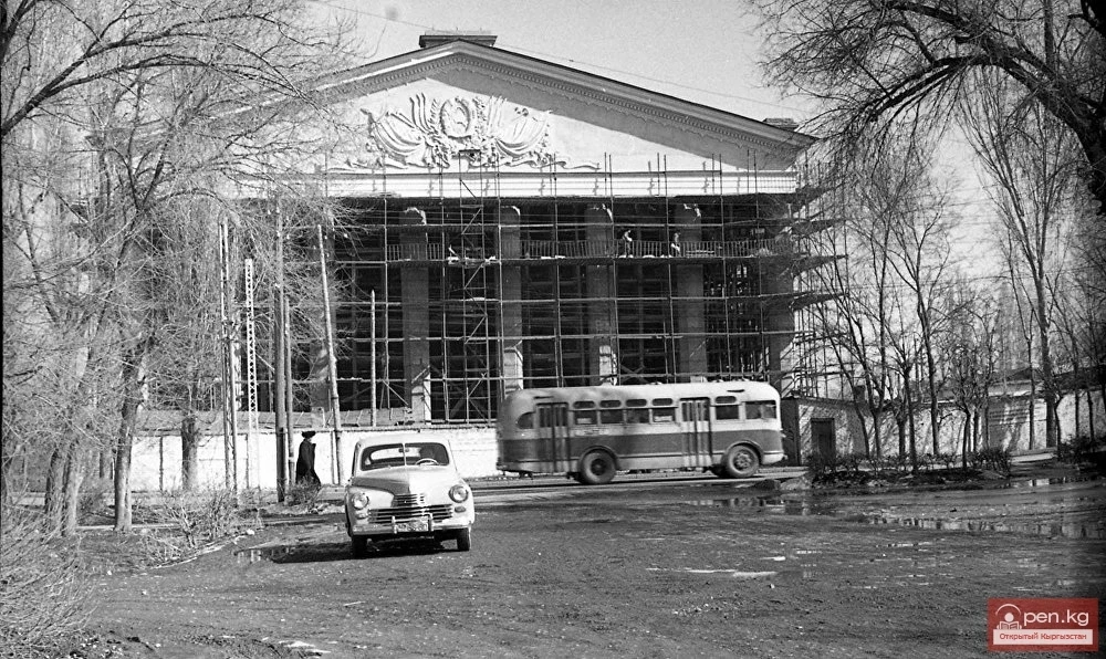 The construction of the building of the National Academic Theater of Opera and Ballet began in the 1950s along the axis of Dubovoy Park named after Panfilov. Information sources state that the construction was so complex and responsible that a special construction site was created under the leadership of N.P. Provorov. The permanent authorized representative of the architect was Pavel Petrovich Ivanov. P.P. Ivanov was the chief architect of the city of Frunze and is rightly considered the founder of the Kyrgyz architectural school.