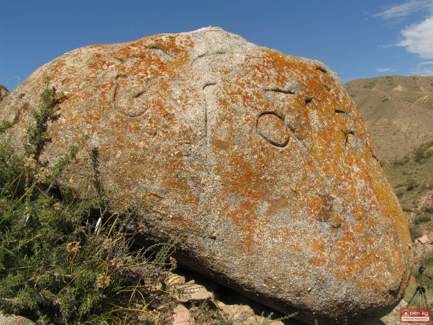 INSCRIPTION ON THE STONE FROM THE TOSOR GORGE On the shores of Lake Issyk-Kul, rock inscriptions...