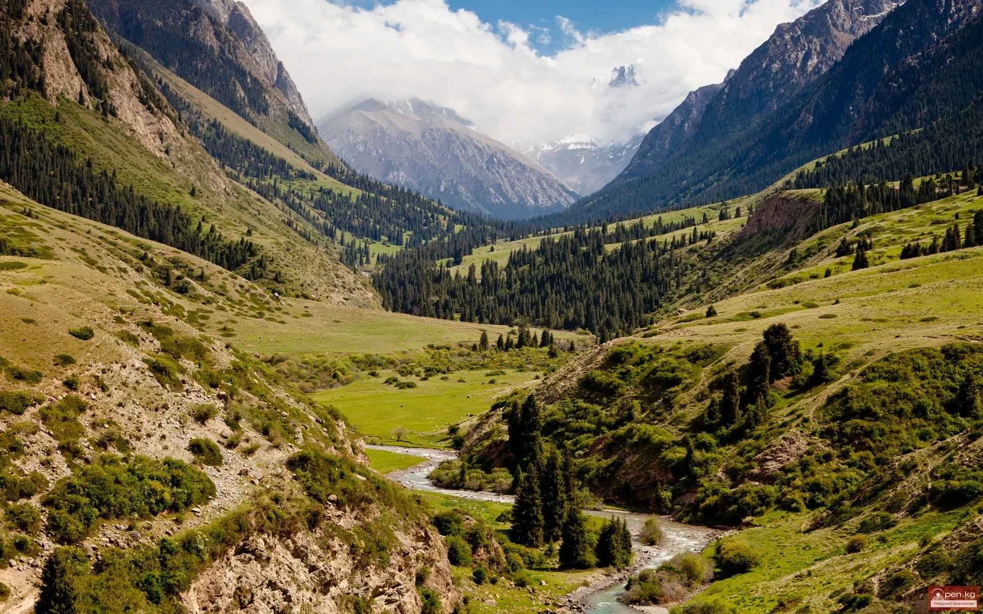 Chon-Kyzyl-Suu - a river valley 40 km long, flowing down from the slopes of Terskey Ala-Too. It is located 55 km from the city of Karakol, in the area of the Kara-Bulun peninsula. The Chon-Kyzyl-Su River flows into Lake Issyk-Kul, and the peninsula itself is a wintering ground for various species of ducks and other endemic birds listed in the Red Book. The entrance to the valley is located near the village of Pokrovka. The gorges in this area are remarkably beautiful. At an altitude of about 2000 meters, a dense forest begins, rich in mushrooms and berries. In the gorge of the Jyly-Suu River (a right tributary of Chon-Kyzyl-Suu), there are hot mineral hydrogen sulfide springs (water temperature +43°C). In the upper reaches of the area lie picturesque passes: Ashuu-Tuu (3900 m), leading to the ridges of Central Tien Shan, 50 years of Kyrgyzstan (4600 m), Ulyanovtsy (4490 m), Hope (4450 m), and Mystery (4400 m), through which the path leads to the Kolpakovsky Glacier - one of the largest in Terskey Ala-Too. Its length is 23 km. Through the Kok-Bel pass, located on the right side of the valley, one can cross into the Jety-Oguz gorge. From here, the most popular seven-day mountain route (trekking) in Terskey Ala-Too begins, ending in the Altyn-Arashan valley.