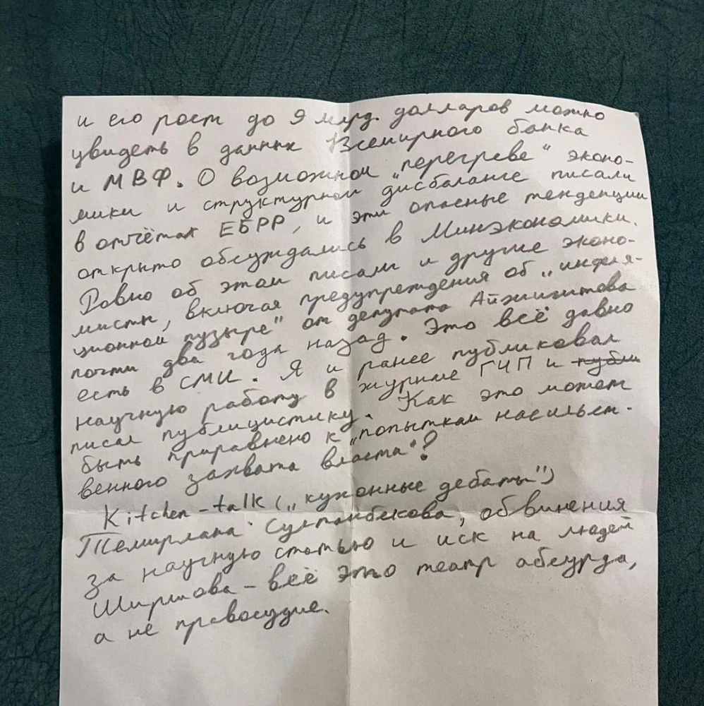 In the following letter dated November 23, Kadyrbek Atambaev reported that the charges against him had changed from "calls for mass unrest" to "attempted violent overthrow of the government."“The basis for this accusation was that I mentioned on my social media page the rise in food prices and the difficulties in the energy sector. This is simply absurd,” he writes.