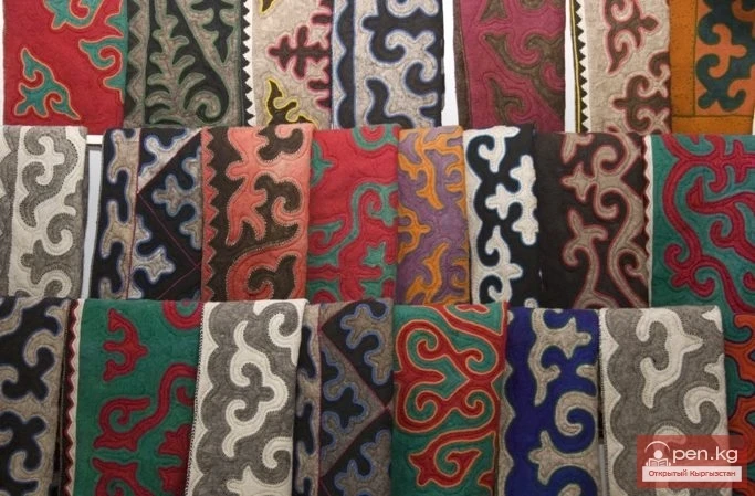 Войлокту мозаика менен орнаменттөө техникасы кыргыздар жана казактар жөнүндө адабиятта жарыяланган. Ошол эле ыкмаларды түштүк кыргыздар да колдонушат.