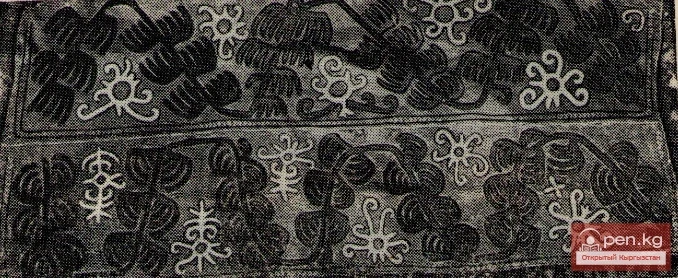 Кыргыздардын өткөндөгү вышивкасынын мүнөзү жана анын орнаменти жөнүндө улуу чеберлердин эскерүүлөрү жана калк арасында калган айрым үлгүлөр аркылуу баа берүүгө болот. Алардын көпчүлүгү биз тарабынан Түштүк Кыргызстандагы экспедициялар учурунда сүрөттөрдө жана тартууланган.