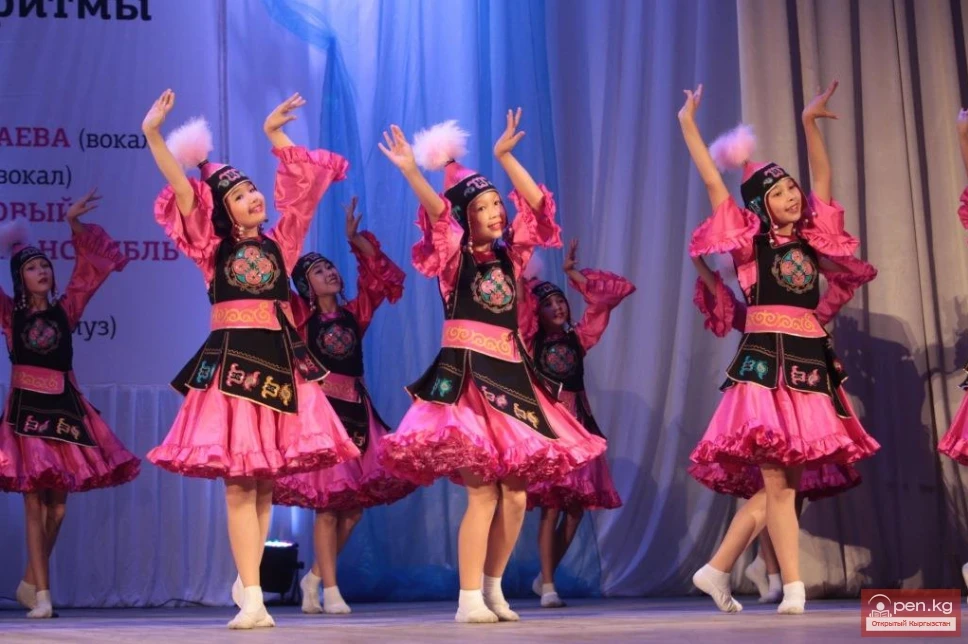 Кыргыз жаштар бийи «Көкөттүү кыз» кыз жана жигит тарабынан аткарылат. Бул бийди түзүүдө хореограф улуттук оюн «Ачакей-жумакей» элементтерин колдонгон, ал кыргыз жаштары арасында кеңири таралган. Эки оюнчу кезектешип альчик ыргытышат. Эгер альчик туура позицияны кабыл алса, анда оюнчу сол колунун эки бармагын бүгөт, эгер болбосо бир бармагын. Эсеп он ыргытууга чейин жүргүзүлөт. Жоготкон оюнчу жүзүн колдору менен жаап, экинчи оюнчу эки колунун бармагын чырпылдатып, каалаган эки бармагын көрсөтөт. Биринчи оюнчу (жүзү жабык) дароо шеригинин бармагын көрсөтүшү керек.