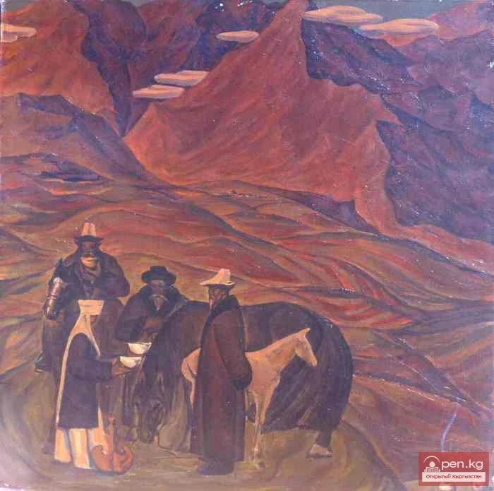 Б. Жумабаевдин чыгармачылык программасына эң жакын адам Мэлс Акынбеков. Ал тоолордо өткөн балалык эскерүүлөрүнө кайрылып, композициянын, түстүн декорациясынын жана кыргыз орнаментинин мыйзамдарын терең түшүнүүсүн көрсөтүп, бир нече таланттуу чыгармаларды жараткан. Анын эң мыкты эмгеги «Алай-Ку өрөөнүндө» (1969) бийик тоолуу Кыргызстанды, пастбище, баркыттай жука чөп менен жабылган, түтүн чыгып турган үй, койлордун отары, булуттарга чалынган бийик чокулары менен бирге жалпы образын берет. Алдыңкы планда статикалык топ сүрөттөлгөн, орнаментке окшош, тыгыз узорго композитордук ыкмада жайгаштырылган, анда эч кандай элементти алып салууга же жылдырууга мүмкүн эмес. Аксакалдарды кымыз менен сыйлаган аялдын сүрөтү, ландшафт менен бирге, жүздөгөн, балким миңдеген жылдар бою кыргыз улуттук турмушунун өзгөрбөс символу катары ритуалдуу көрүнөт. Белгилүү бир планда бул сүрөттү тарыхый кенеп катары караса болот, ал элдин күнүмдүк жашоосунда азыркыга чейин бар болгон маанилүү нерсени тастыктап турат. Бул сүрөт үчүн художник натуралык материалды топтобогонуна өз логикасы бар, анткени этюддардан баш тартуу көркөм тилдин шарттуулугун жана сүрөт образын субъективдүүлүгүн күчөттү, заманбап турмуштун майда-чүйдөсүнөн тазартылган.