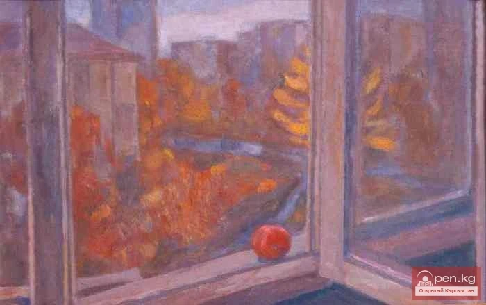 «Археологдор» (1977), «Беркут менен аңчылар» (1980) жана «Кайрадан туулган очогумда» (1985) сүрөттөрүндө пейзаж чоң роль ойнойт, «Балдардын маскарады» (1978), «Капталда» (1981) жана ар кандай жылдардагы портреттерде фон шарттуу, мейкиндикти жандуу жаркырап жана түстөрдүн ойноп туруусу катары кабыл алынат.
