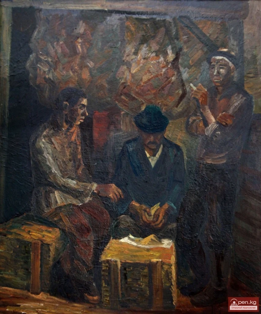 Социалдык теманы «Продовольстводон келген адамдын өлүмү» сүрөтүндө өзгөчө чечилген. Бул жерде Бейшенов революциялык теманы чагылдыруудагы адаттагы канондордон четтеп, ошол жылдардагы Түштүк Кыргызстанга мүнөздүү жашоо детальдарын, мисалы, арба, кол менен токулган жиптер, өлтүрүлгөн кедей жигиттин улуттук кийими, сүрөтчүгө катуу мүнөздөгү композицияны түзүүгө мүмкүнчүлүк берди, анда катуу, дээрлик графикалык, декоративдүүлүк абалдын трагизмин гана баса белгилейт.