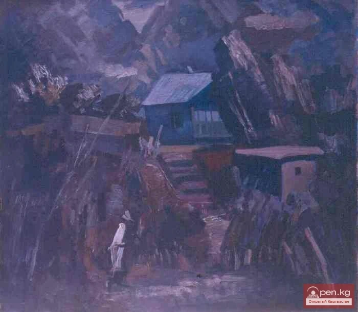 «Эне» сүрөтүндө юрттун интерьерин чагылдыруу менен, сүрөтчү пейзажды киргизүү аркылуу мейкиндикти кеңейтет. Юрттун керосин лампасы менен жылуу жарыгынын контрастын, аялдын көйнөгүнүн кызыл түсү менен, жана бийик тоолуу өрөөндү курчап турган суук караңгылык, гармониялык тынчтык жана улуулук сезимин жаратат, муну жаш энеден бала менен болгон образы — классикалык энелик теманын өзгөчө интерпретациясы колдойт. «Токойдогу кеч» жана «Джайлоодогу кеч» сүрөттөрү пейзаждык чечимде жазылган. Бул сүрөттөрдөгү живопись тегиз, түс назик моделденген жана тынчтык, мейкиндик жана жаңыдык абалын билдирүүгө багытталган. Бул сүрөттөр аба сыяктуу, жеңил жазылган, контурлары жумшак, көлөмдөр түс менен назик көрсөтүлгөн,