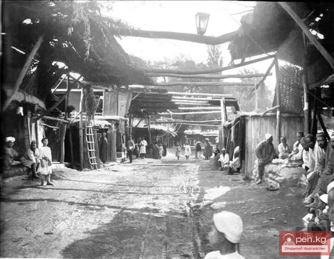 Эски шаар, тар, бурулуштуу көчөлөрдүн лабиринти, тупиктер, чачылган глинобиттүү үйлөр, кең базар, көптөгөн дүкөндөр жана мечиттер менен жаңы «орус» бөлүгү туура пландаштырылган кең көчөлөрдүн, тополдор менен отургузулган үйлөрдүн тору менен жакшы айырмаланды. Бул жерде колониялык башкаруу органдары, орус чиновниктеринин, соодагерлеринин, өнөр жайчыларынын, шаардыктардын имараттары жайгашкан. Шаар курулушу жана пландалган структура боюнча шаар ошол учурда кварталдарга (махала) бөлүнгөн. Ар бир кварталдын өз аталышы бар эле. Мисалы, Ходжаган, Чар-Куча, Жиндалик, Кыргыз-Алибай, Токмок Караягач ж. б.