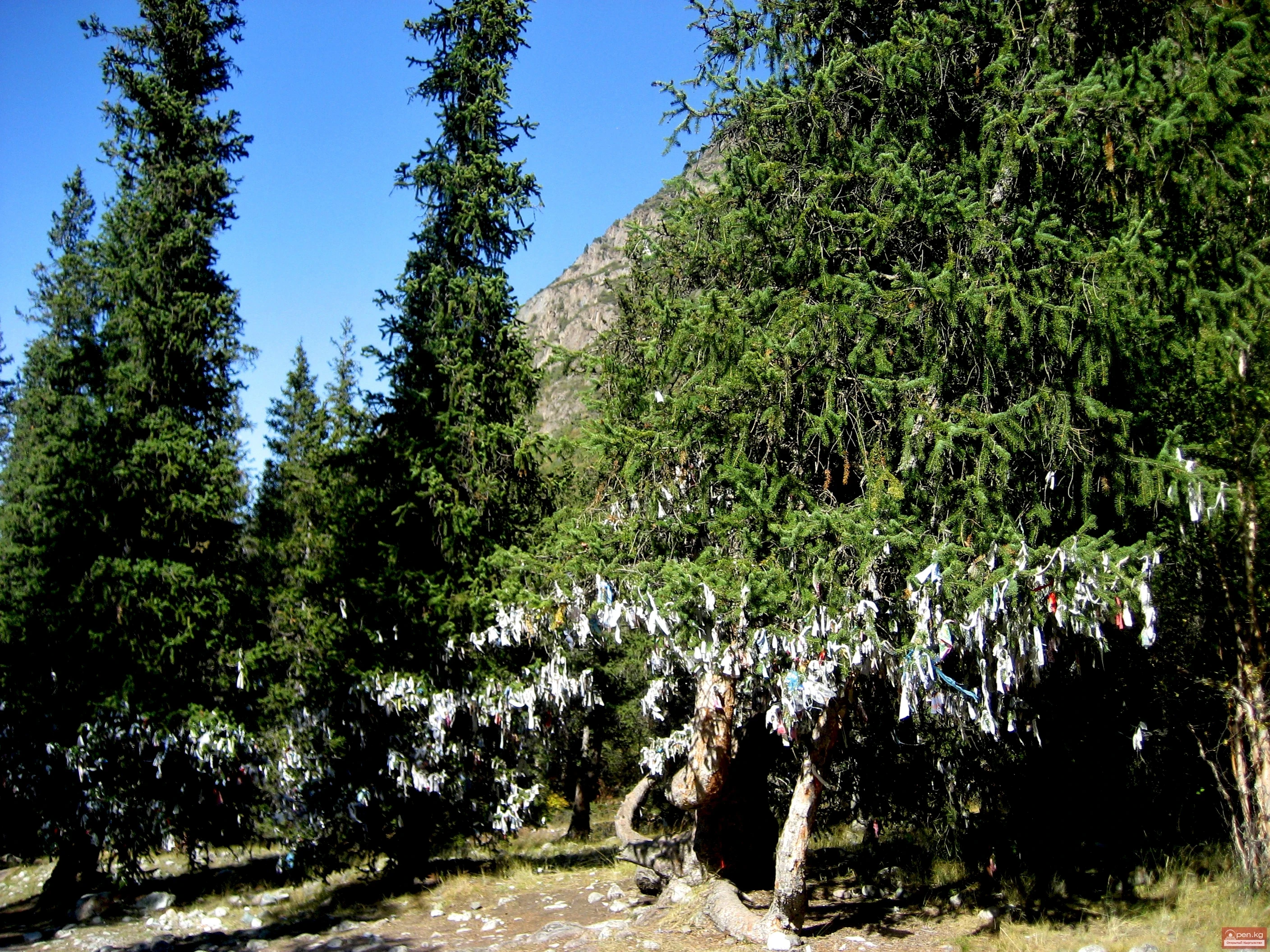 Элдик ишенимдердин салттары да кызыктуу. Саякатчылар необыкнун көрүнүшүн көрүшөт. Кайсы бир жол жээгиндеги бутактар бардык жерде жыртык-кутур менен толтурулган. Бул да язычылык салттын реликти: жогорку күчтөргө оорулардан коргоо, жакын адамыңызды дарылоону суранышы. Оор эмес жана жөнөкөй. Бирок, жаңы жылдык даракка окшош кооздолгон бутактарды көп кездештиресиз. Ал эми маанайыңыз толугу менен жок болот — бул адамдын азаптарын символдойт. Ким билет, балким, сиз да ушундай метаны байлайсыз...