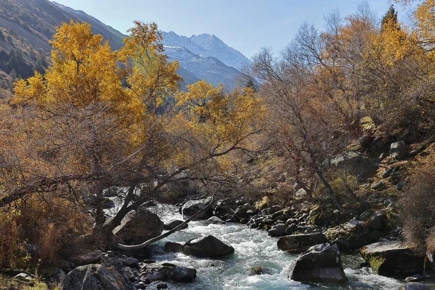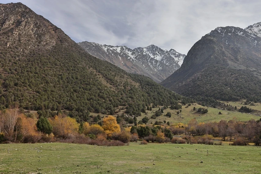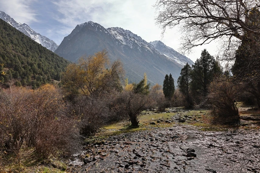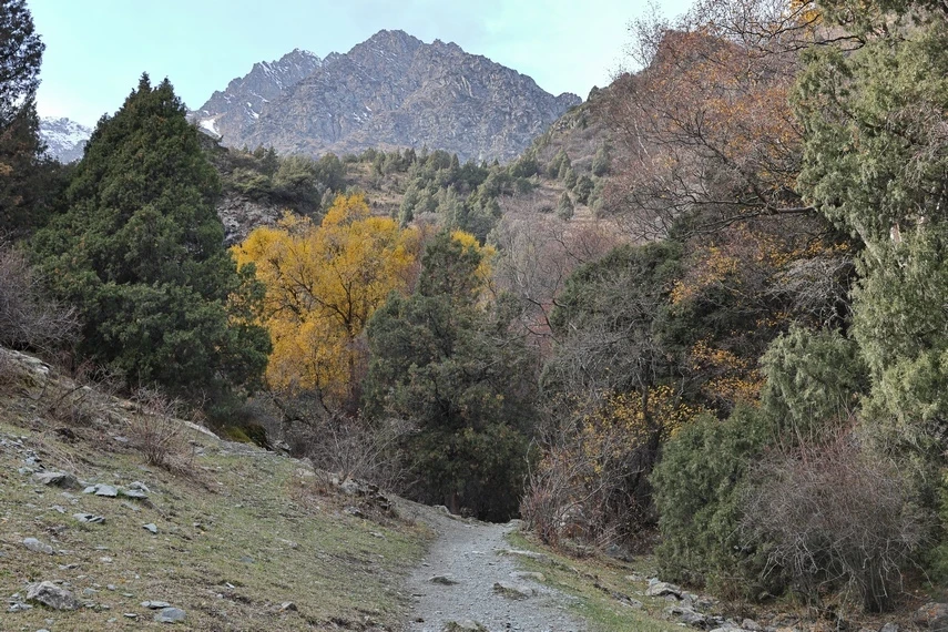 Эми шаардан чыгып, Евгений Липкиндин сүрөткө тарткан Аламединское ущельесинин пейзаждарынан ырахат алабыз.