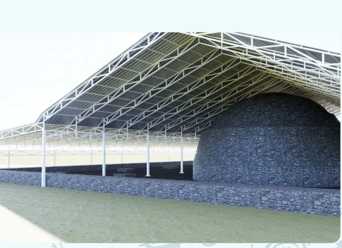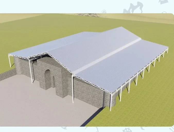 Реставрация учурунда коопсуздукту камсыздоо үчүн убактылуу чаралар, мисалы, аймакты тосуу жана чатыр орнотуу зарыл. Тосмо жаныбарлардын киришине тоскоол болот, ал эми чатыр жаан-чачындан коргойт жана адистер үчүн ыңгайлуу шарттарды түзөт. Реставрация аяктагандан кийин бул конструкциялар алынат.