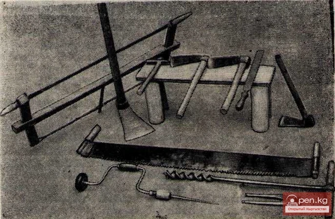 Кыргыздардын негизги жыгач устачылык куралы узун колдонуучу чурка (70—75 см) болгон. Анын жардамы менен жыгачтын баштапкы иштетүүсү жүргүзүлүп, чеберлер жыгачтын бетин тегиздешкен. Калган куралдар кыргыздардын юрта, седлдер жана жалпы жыгач буюмдарын даярдоодо колдонгон чеберлердин куралдарына окшош болгон. Орустардан таасирленип, кыргыз чеберлери дагы да өнүккөн куралдарды өздөштүрүшкөн.