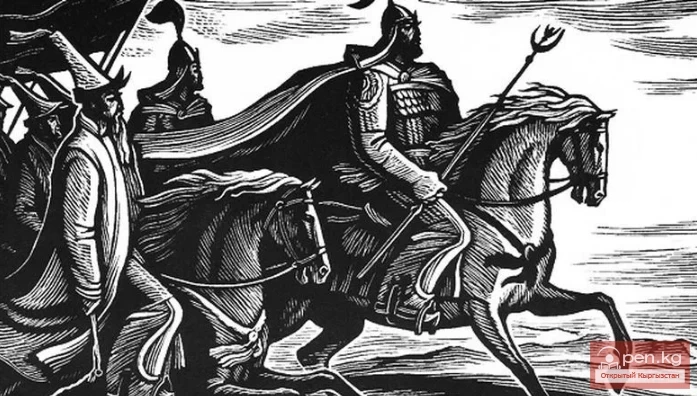 - Эгерде сен айткан нерселер чын болсо, - деди Семетей, - мен сени сыйлап, кыргыз элинин ханы кылам, эгерде бул баары жалган болсо - кара! Анда мен сени бул жерде, ушул көмүрдүн жанында, малдай сойом!