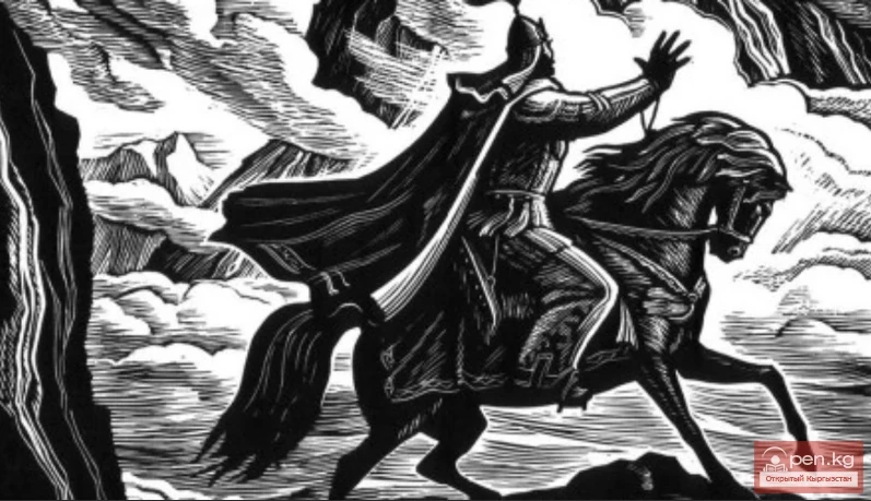Бакайдын минген атынын не жалы, не кулагы жок. Ал териден жасалган шым кийип, эски жыртык халат кийип жүрдү, көздөрү жашып, көкүрөгүндө кыжырдануу болду. Ал ушул убакытта терең карып, жашоосунун күндөрү эсептелди.