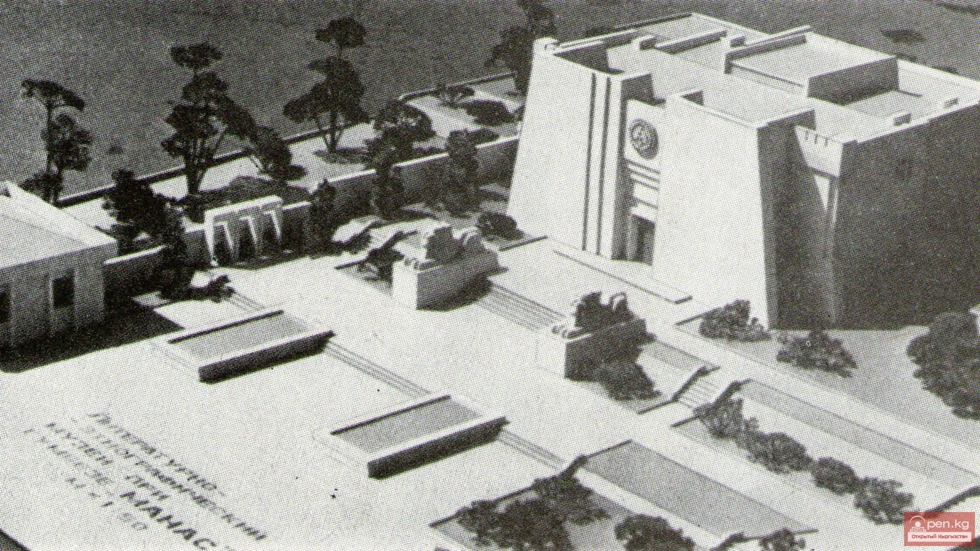 1975-1976. Фрунзе шаарындагы Кыргыз ССРинин Компартиясынын ЦК имараты (жамааттын курамында, I жана II тур — эки ыраазычылык сыйлыгы);