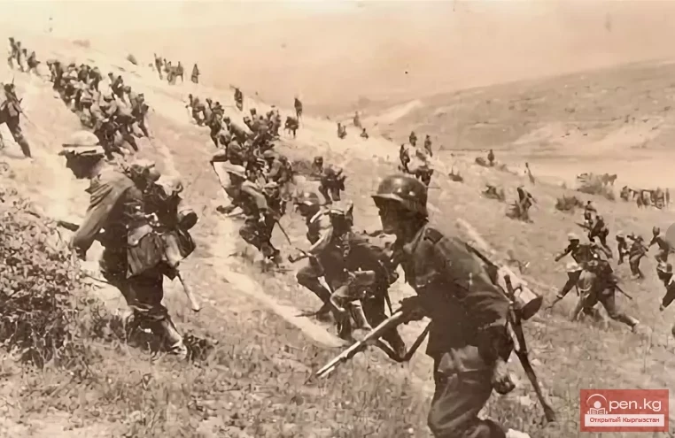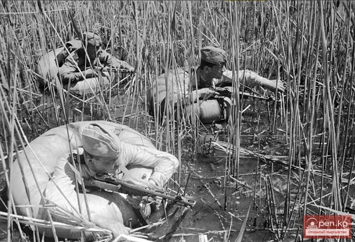 Бирок душман бизге эс алууга мүмкүнчүлүк берген жок: биз буттарыбыздан сууну төгүп, душман жоокерлери чабуулга өтүштү. Алар, көрүнөт, бизди Днепрге ыргытууну каалашкан. Биз окопто отурбай туруп, эсеп от ачты.