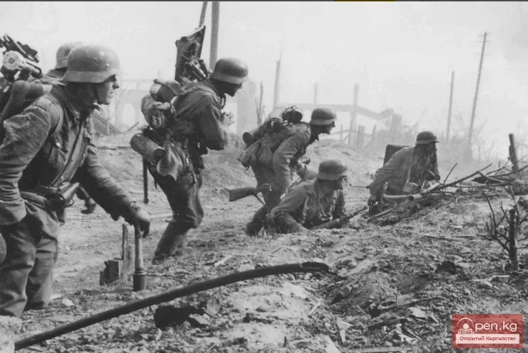 Ал эми жөө аскерлер, жөө аскерлер... Сары-жашыл шинелдерде жана мундирада турган фигуралар ар жактан — ар бир жыштыкта, ар бир дөңсөөнүн, кустун артынан чыгып жатты. Алар бизди жек көрүп, шнапс менен толтурулгандай, ушунчалык кыжырдануу менен биздин жоокерлерге чабуул жасашты. Бизге бир нече жолу автоматтарга жана карабиндерге кол салууга туура келди, гранаталар менен коргонууга туура келди.
