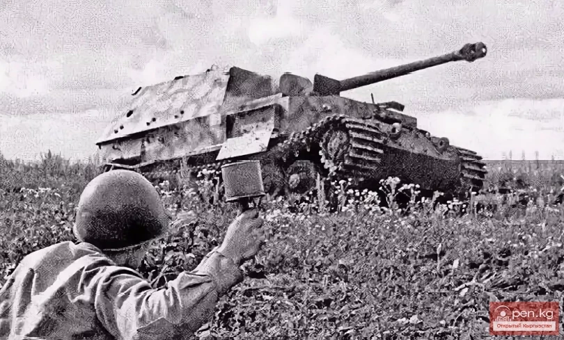 Бардыгы түшүнүп жатты, душман бул маанилүү позициядан аларды кууп чыгуу үчүн күчүн аябайт, андан ары анын коргонуу системасына кирүү жолу ачылат... Ошентип болду. Бир аз убакыттан кийин бийиктикте бир нече снаряддар жарылып, топурак жана чаңды жулуп, андан кийин танктардын коргоосунда, кыйкырып, фашист автоматчылары чабуулга чыгышты. Танктар чабуулга жакындаганда, аларга каршы танкка каршы гранаталар учуп, душман пехотасына пулемет жана автоматтардан свинцтүү жаан жаады.