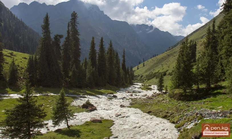 Терскей-Алатау тоолору, Иссык-Куль котловинасын түштөн чектеп, эки-үч миң метр бийиктикте Иссык-Кулдун деңгээлинен жогору көтөрүлүп, массивдүү, тиштүү дубал түзөт, бул дубалда кээ бир жерлерде өткөөлдөр кесилип, Валиханов өзүнүн жолдошторунан артка чегинүүгө шашкан жок — ал Иссык-Куль котловинасынан, анын сейрек айылдарынан жана кичинекей жерлеринен айрылууга даяр эмес болчу... Кечээки байкоолорун күндөлүккө жазып, ал дарыянын жээгинде отурду, анын жээгинде теректер өсүп, жел жапайы жапырактарды жулуп, желди жулуп, жапырактын желдери күнгө жаркырап, балык чешигине окшошту. Дарыянын эки тарабында, тоолорго параллелдүү, тегиз талаа кеңдиктери, дан өсүмдүктөрү, полынь менен капталган; Иссык-Куль котловинасында кургак болду — тоо массивдери булуттарды тартып, алар өздөрүнүн чокуларында ным төгүштү. Тоо этектеринде, тар жана терең суу жок жырткычтар (кейинчерээк алар башка, орусча аталыш алат — "прилавки") да талаа жана жарым чөл өсүмдүктөрү менен капталган — сары чилига, колючулар, сейрек жайгашкан вишнянын бутактары, кызыл жемиштер менен эфедранын көк чачтары, могильная чөп... Жана болгону тоолордун жогору жагында, караван кеткен жерлерге, дарыянын жээгине шиповник, барбарис, рябина, иргая, ал эми сары-жашыл, шинель түстүү, тоолордун капталдарында жогорку, алыстан кипариске окшош тянь-шандык арча көрүнүп калды...