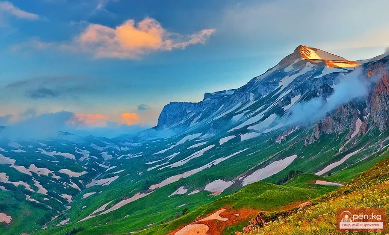 Эми жакын жерде, чокулардан аккан мөңгүлөр, карлуу жамгырлар, карнистер көрүнүп калды. Караван дагы эле жашыл альпий лугунда түнөдү, бирок мөңгүлөрдүн суук деми оттун жанында тыгызданып, жүн кийип отурууга мажбур кылды.