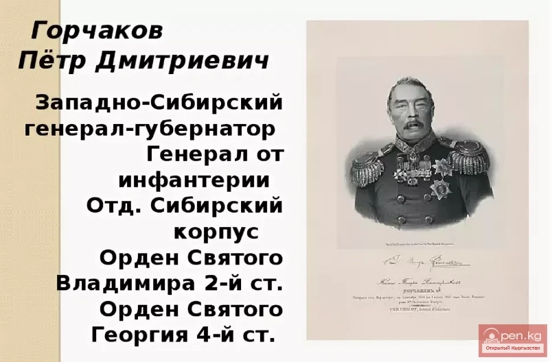 МАНАП САРЫБАГЫШ ЖАНТАЙ КАРАБЕКОВДОН ЗАПАДНЫЙ СИБИРДИН ГЕНЕРАЛ-ГУБЕРНАТОРУ П. Д. ГОРЧАКОВГО РОССИЯНЫН КОРГООСУН АЛУУ ТУУРАЛУУ УВЕДОМЛЕНИЕ КАТЫ
