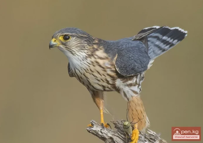Аңчылык учурунда дербник жерден төмөн учуп, азыгын абадан жерден же өсүмдүктөрдөн издейди. Уялоо мезгилинде көбүнчө жуп болуп же кичине ястребдер менен бирге аңчылык кылышат, бир куш төмөн учуп, экинчиси 10-20 м жогору учат.