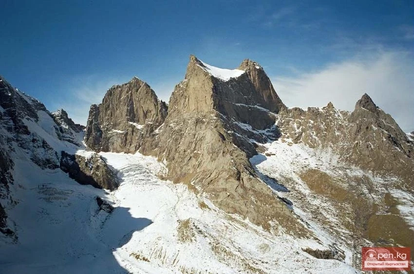 Корона чокусу (4860 м) Ала-Арча улуттук паркында Ак-Сай мөңгүсүнүн үстүндө жайгашкан Бул Кыргыз...