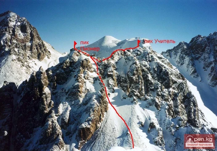 Учитель абдан тик. Түштүк-батыш контрфорсунун түндүк жагы чокусунан (чогултулган 200 метр) Ала-Арча кыркасынын водоразделине таянып, кичине тик чокус түзөт. Андан чыгыш жана түндүк-чыгышка чоң карнистер түшүп турат, алар ар дайым төмөн түшүүгө даяр. Чыгуучулар бул нерсени эске алышы керек.