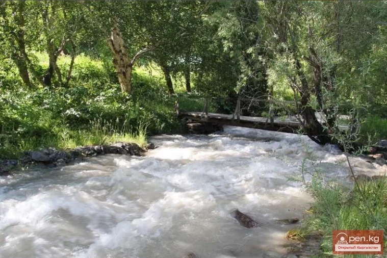 «А» пунктунун башталышы Жазы дарыясы менен мал өткөрүүчү жолдун кесилишинде алынат.