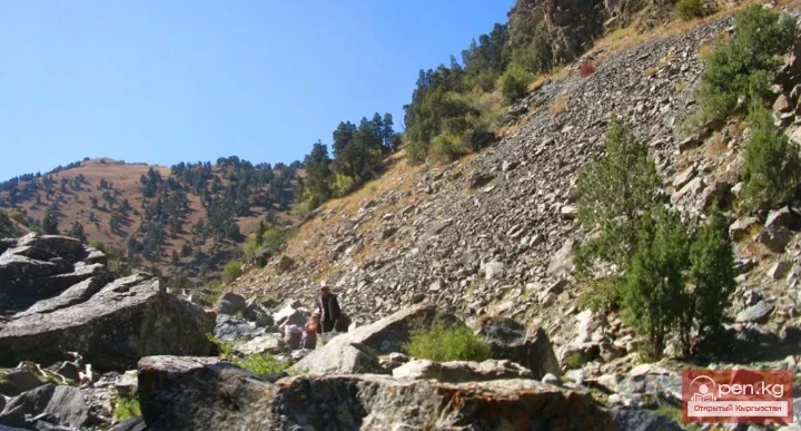 Паркка караштуу 62,5 км аянт Тажикстандын Ганча районунун чегинде. Райондун тургундары өздөрүнүн токой массивдерин толугу менен жок кылышкан, жаныбарлардын ресурстарын калтырбай. Тажикстанда энергетикалык кризис күчтүү, көмүрдүн баасы абдан жогору жана көпчүлүк үчүн жеткиликтүү эмес. Жанар-жағаркы чындыгы жоктугунан улам кыргыз тарапка өтүп, токойду кесүү учурлары көбөйдү. Ошондо кыргыз тарапта чек араны жана табигый байлыктарды коргоо үчүн чек ара аскерлеринин блок-посттору коюлган. Летний мезгилде Наумина, Чашмагилдан, Жакурут ж.б. сыяктуу бир нече өткөөлдөр бар.