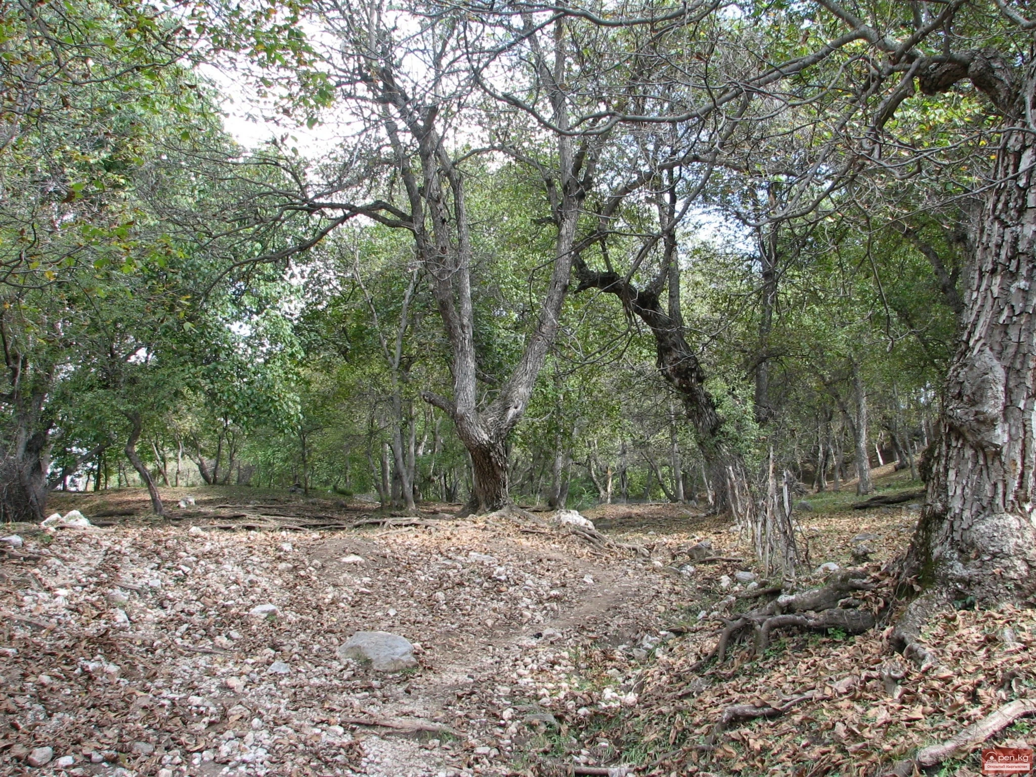 Реликт жаңгак-жемиш токойлору, миңдеген жылдардан бери бизге жеткен, 1200—2000 м бийиктикте жайгашып, 70 миң гектардан ашык аянтты ээлейт. Бул токойлордун табигый курамы ар түрдүү. Деревьялардын негизги түрү грек жаңгак болуп саналат. Ал түндүк тараптагы капталдарда өсүп, бүт массивдерди түзөт. Башка капталдарда жалгыз дарактар же кичинекей куртиналар кездешет. Тоо дарыяларынын жээгинде көптөгөн жаңгак дарактары бар. Грек жаңгактары, чоң шар формасындагы таажысы менен, ыңгайлуу шарттарда 30 м бийиктикке жетиши мүмкүн, ал эми алардын діңдери, жарылган кабык менен капталган, эки метрге чейин диаметри болушу мүмкүн.