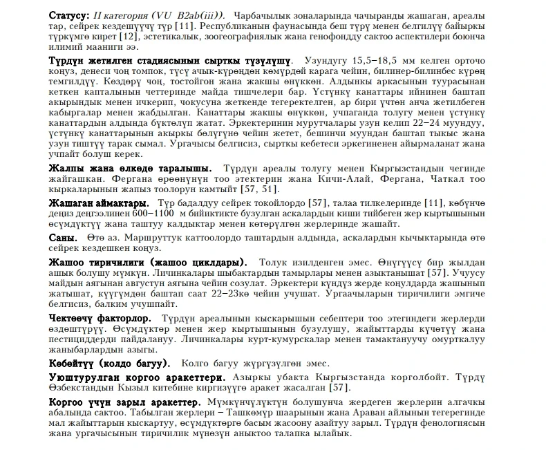 Туркестанскии усач Статус: 2 [VU: D]. Кыргызстанда жоголуп бара жаткан түр. Кыргызстандагы...