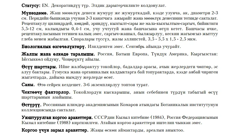 Зинаида тюльпаны Статус: VU. Кыргыз хребетинин тар таралган, жоголуу коркунучундагы эндемикалык...