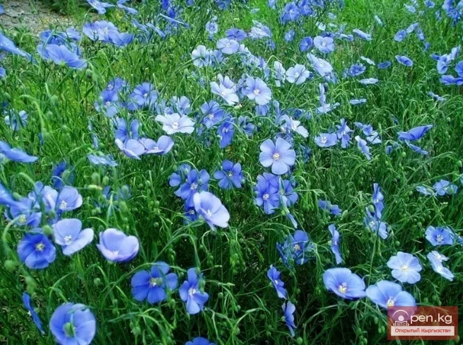 Лен разночашелистниковый. Сабагында өтө күчтүү жиптерди камтыйт. Ал шалбааларда өсөт жана кооз роза түстүү гүлдөргө ээ. Бул лендин жиптеринен жергиликтүү тургундар жиптер жасашат.
