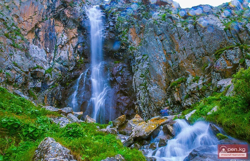 Ак-Сай шаркыратмасы базалык лагерден, Рацек хижинасынан чыккан жолдон жакшы көрүнөт.