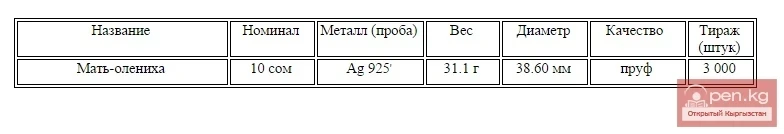 Коллекциялык монета "Эне-мурун", "ЕвразЭС өлкөлөрүнүн элдеринин легендалары жана жомоктору" сериясына арналган