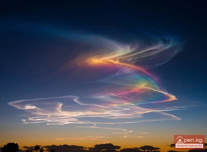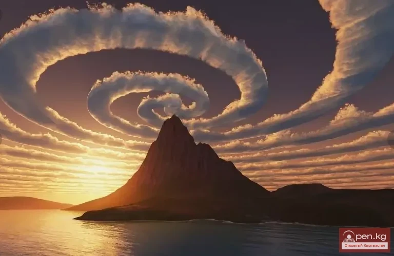 Күндүн батышында жаркырап турган таң калыштуу спиралдык булут.