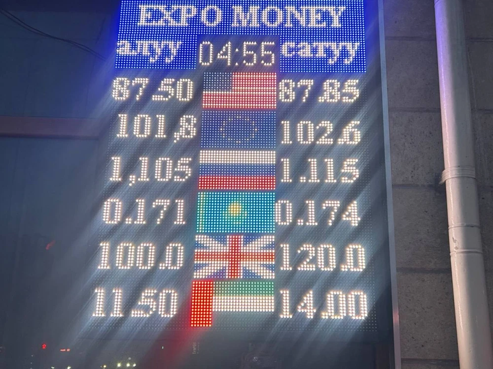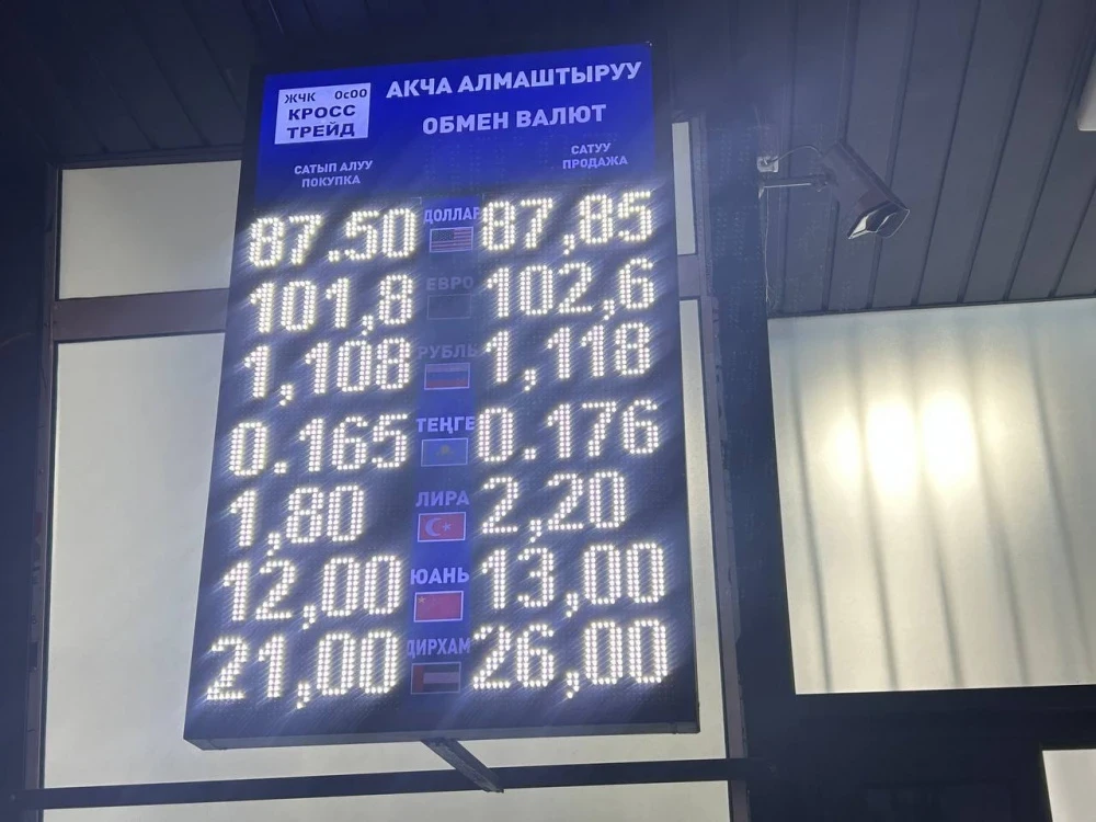Рубль бир аз кымбаттады: анын баасы 1,10-1,11 сом сатып алууда жана 1,11-1,12 сом сатууда.