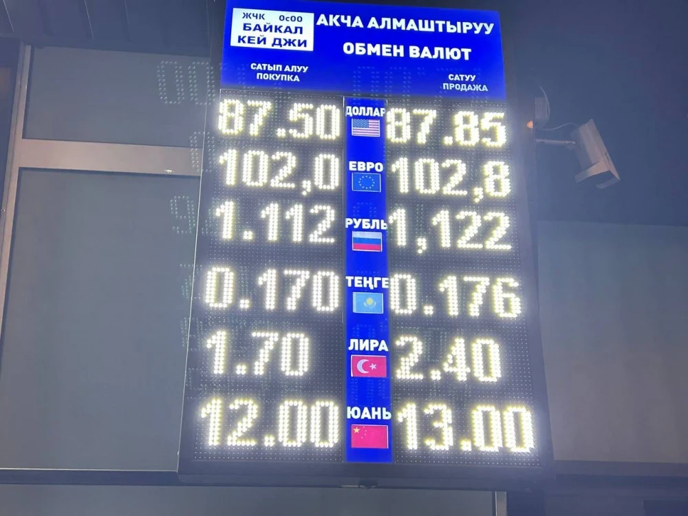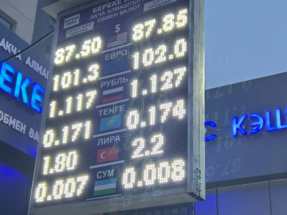 Доллардын курсу мурдагыдай эле калды: сатып алуу 87,5 сомдон, сатуу 87,85 сомдон жүргүзүлөт.
