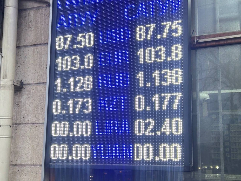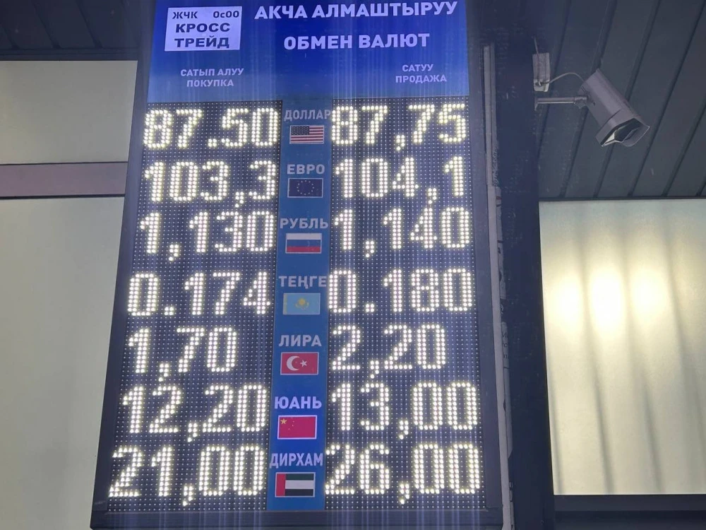 Узак убакыт бою доллардын курсу өзгөрүүсүз калууда: анын баасы сатып алууда 87,5 сом, сатууда – 87,75.