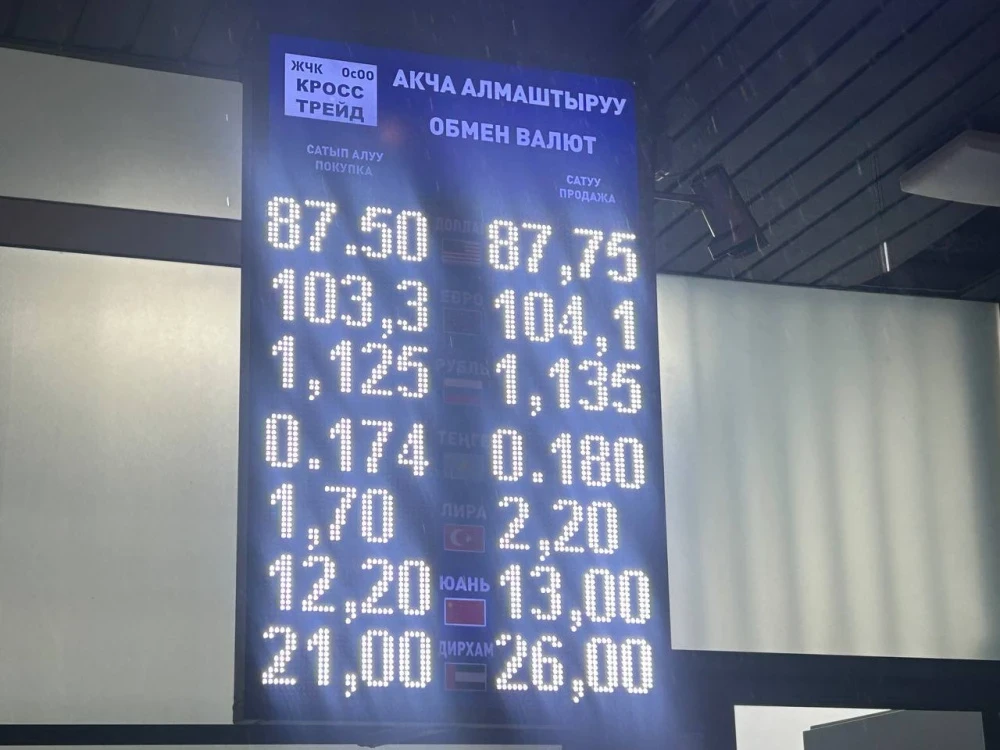 Доллар курсу өзгөрүүсүз калды: аны сатып алуу 87,5 сомдон, сатуу 87,75 сомдон жүргүзүлөт.