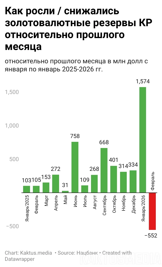 Жаңы жылдын башында резервдердин жалпы суммасы $10 миллиард 177,18 миллион болсо, февралга чейин ал $9 миллиард 625,44 миллионго чейин төмөндөгөн.
