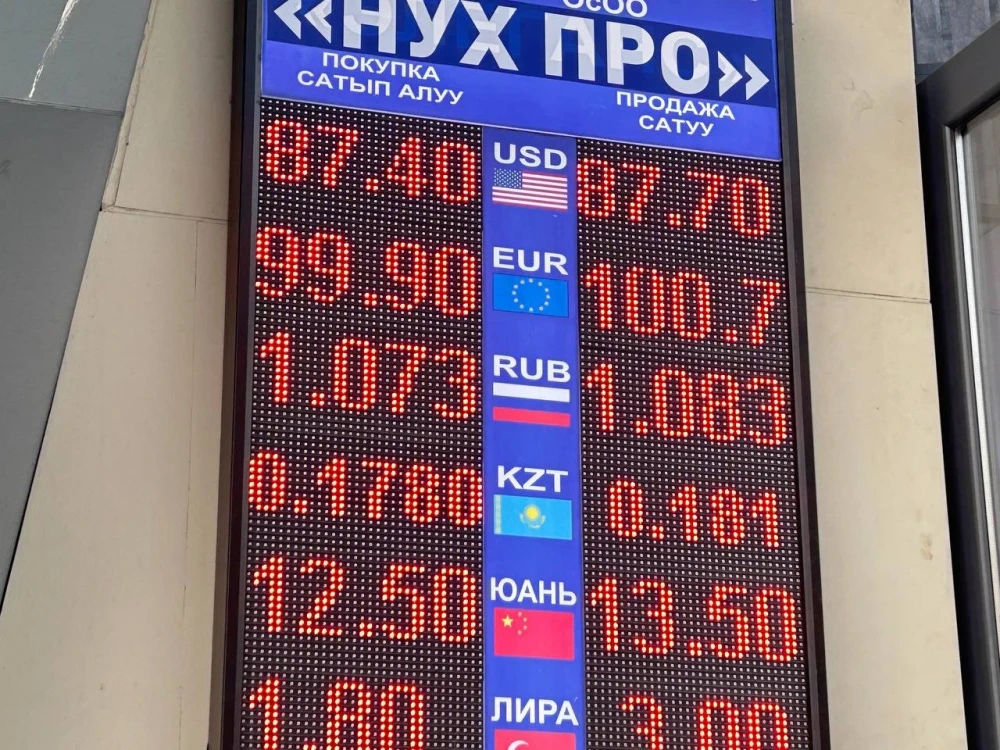 Доллардын баасы төмөндөп, сатып алуу боюнча 87,4 сом, сатуу боюнча 87,7 сомду түздү.
