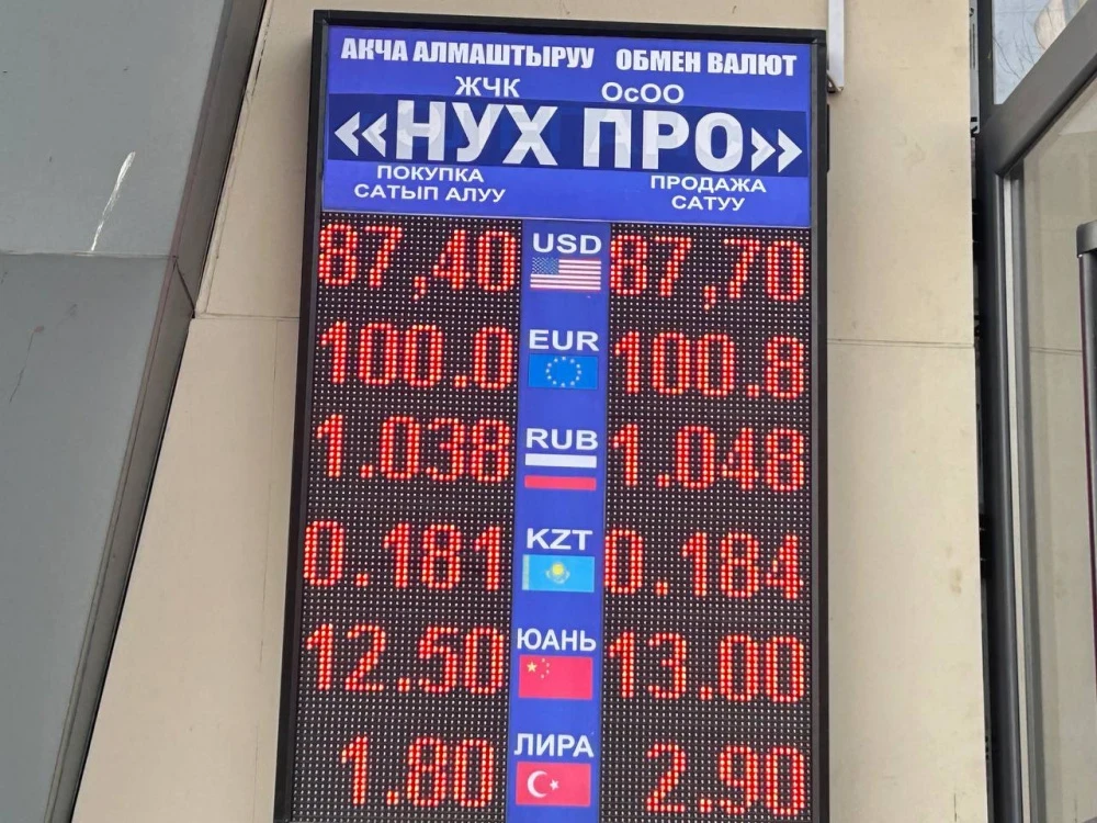Доллардын курсу өзгөрүүсүз: аны сатып алуу 87,4 сомдон, сатуу 87,8 сомдон жүргүзүлөт.