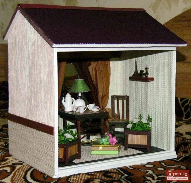 - Жок. Менин атам геолог, мен дайыма биолог же геолог болом деп ойлочумун. Билим алып, мен азыркы ишимди элестете да алган эмесмин. Мен Кыргызстан боюнча көп саякат кылдым, өлкөнүн эң алыскы бурчтарына барып, убакыттын өтүшү менен гид болуп калдым жана азыр туристтик компанияда иштейм. Жумуш күндөрү мен жөнөкөй офис-менеджермин, дем алыш күндөрү - гид, ал эми кечинде - устат. Бактыга жараша, алдыда узун кышкы кечелер бар, мен жаңы румбоксторду түзүү үчүн аракет кылам. Балалык таасирлеримден менин апам жасаган картондон жасалган ушундай үйчүк эсимде, ал жерде түстүү фломастерлерден жасалган балкон эң көп эсимде калды.