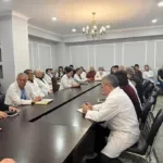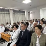 Эки Улуттук кардиология борборунун жамааты жаңы жетекчилер менен таанышып, аларды саламаттык сактоо министринин биринчи орун басары Айбек Маткеримов жана министрдин орун басары Бакытбек Кадыралиев тааныштырды.