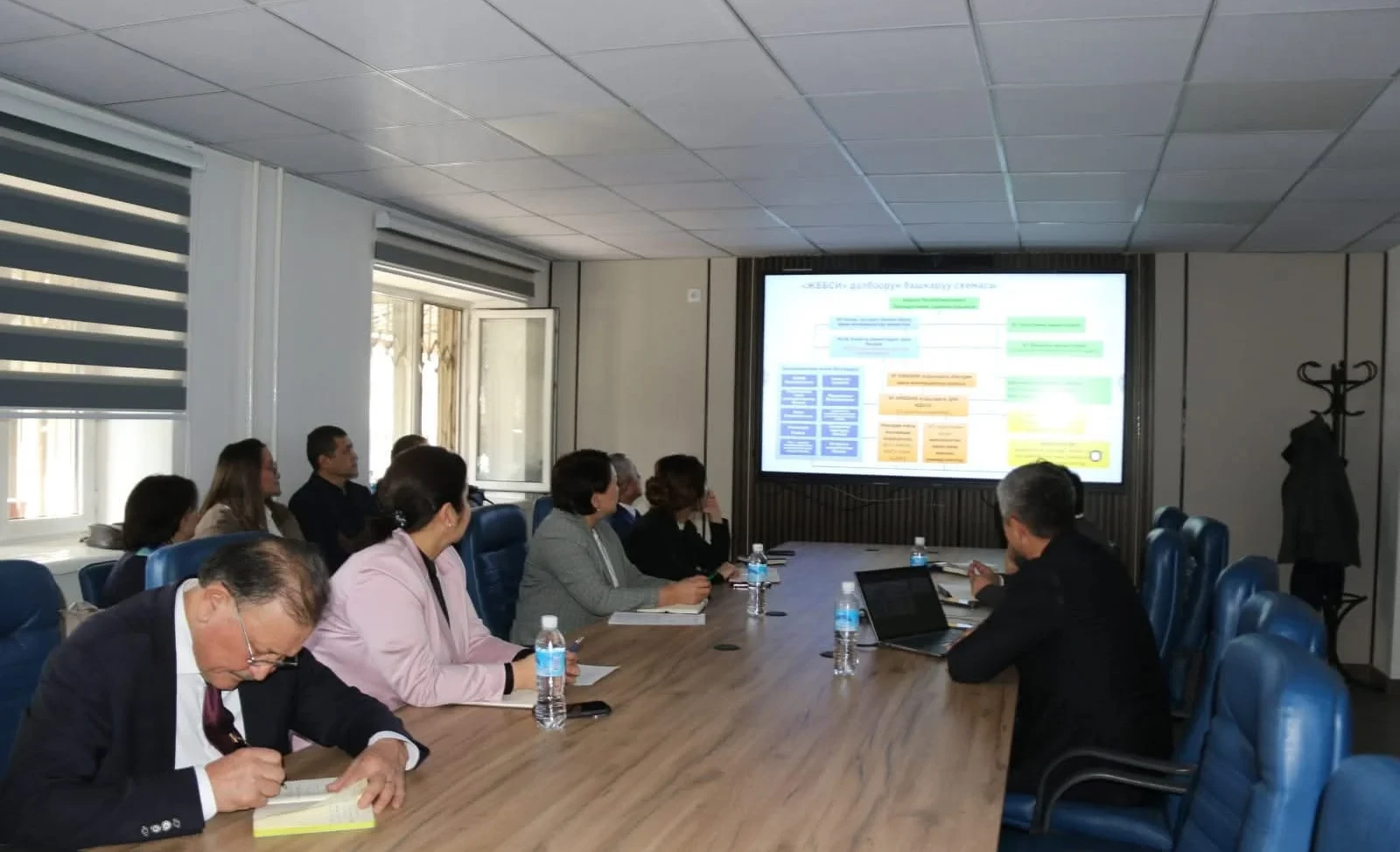 Презентацияда министр жана министрликтин ар түрдүү структуралык бөлүмдөрүнүн жетекчилери катышты.