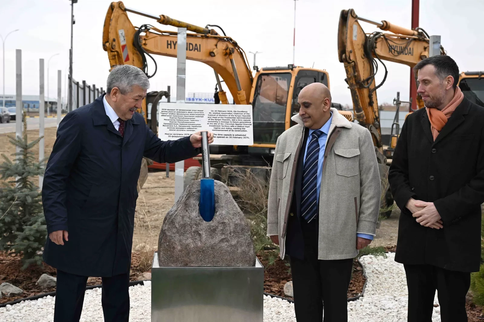Ысык-Көл районунда Кыргызстанды өнүктүрүүдө маанилүү этап болуп өттү: өкмөт башчы Адылбек Касымалиев «Тамчы» атайын финансылык-инвестициялык аймагынын капсуласын салуу аземине катышты.