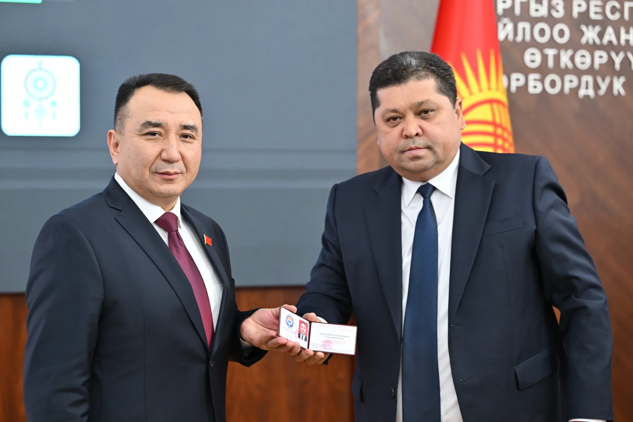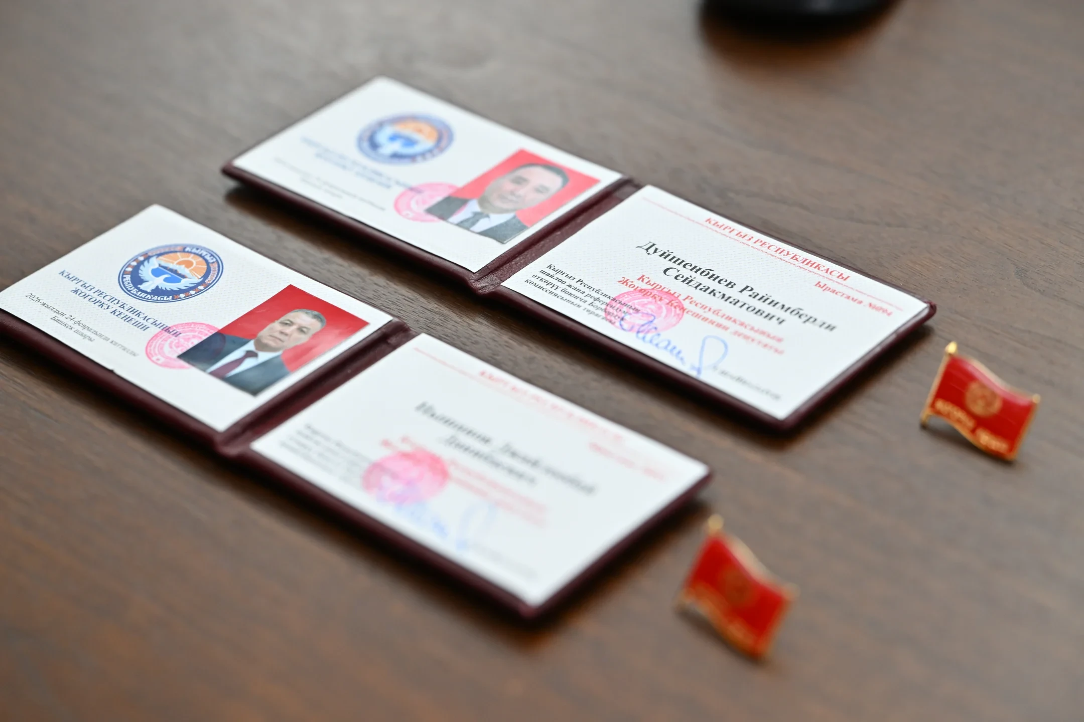 Маалыматка ылайык, Дуйшенбиев расмий түрдө округ №14төн депутат катары катталса, Нышанов округ №15 боюнча мандат алды. Аларга статусун тастыктаган күбөлүктөр жана төш белгиси тапшырылды.