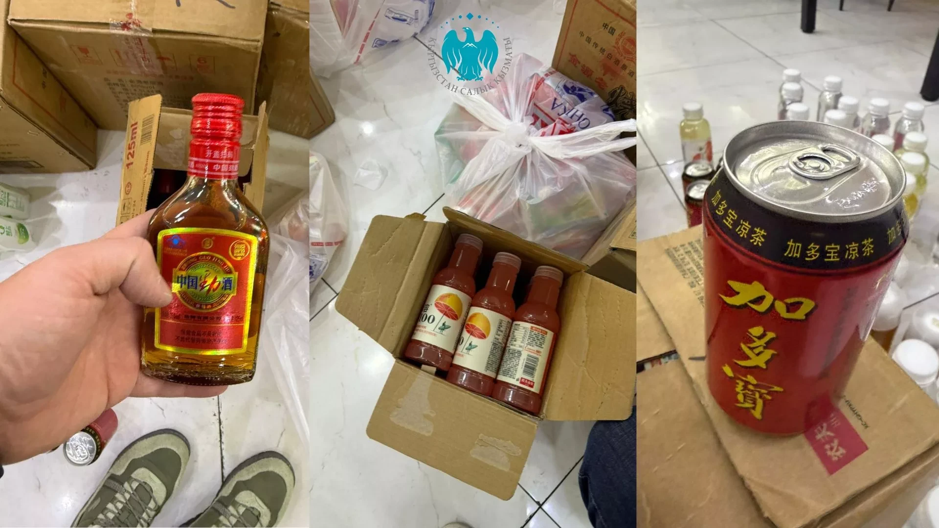 Атап айтканда, «Чунцин Хого» дүкөнүндө акциздик маркалары жок 160 кытай өндүрүшүндөгү алкогольдук продукция, ошондой эле спирттин мүнөздүү жыты бар 405 литр液к жана 124 кант камтыган ичимдик табылды.